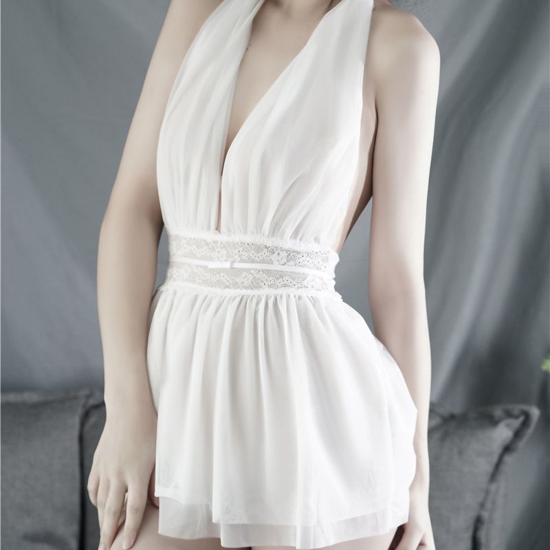 (情趣内衣)羞羞宝贝深V性感挂脖睡裙(白)